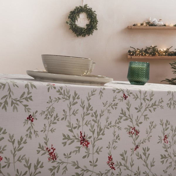 Χριστουγεννιάτικο τραπεζομάντηλο σε διάσταση 140x240cm, από 50% βαμβάκι και 50% πολυέστερ, τύπου half panama.