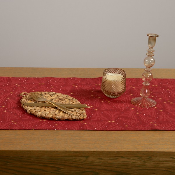 Χριστουγεννιάτικη τραβέρσα σε διάσταση 45x140cm, από 50% βαμβάκι και 50% πολυέστερ, τύπου half panama.