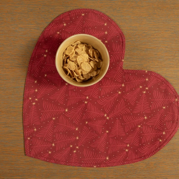 Χριστουγεννιάτικο Σουπλά σε σχήμα καρδιάς ,δυο όψεων, από ύφασμα half panama 50%βαμβάκι-50%πολυέστερ.