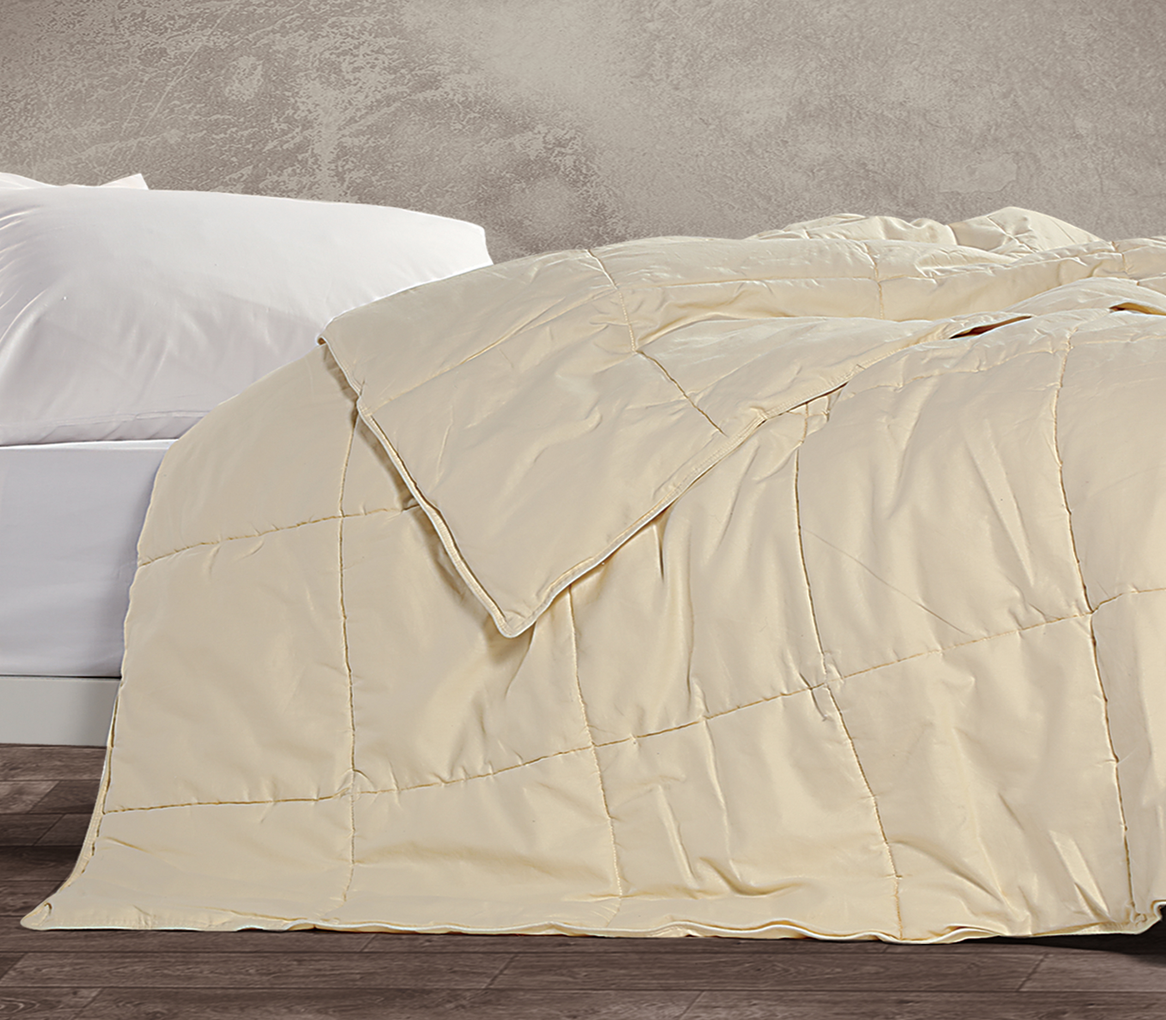 Πάπλωμα μονό με εσωτερικό γέμισμα από 100% αυστραλιανό μαλλί και εξωτερικό ύφασμα από 100% βαμβακερό 233 κλωστών.