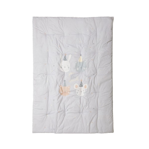 Βρεφικό πάπλωμα κούνιας διάστασης 110x140.Κατασκευασμένο με ύφασμα από 100% βαμβάκι και γέμισμα από 100% πολυέστερα.