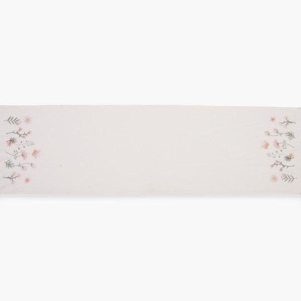 Τραβέρσα με κέντημα και φουντάκια σε διάσταση 40x140cm.