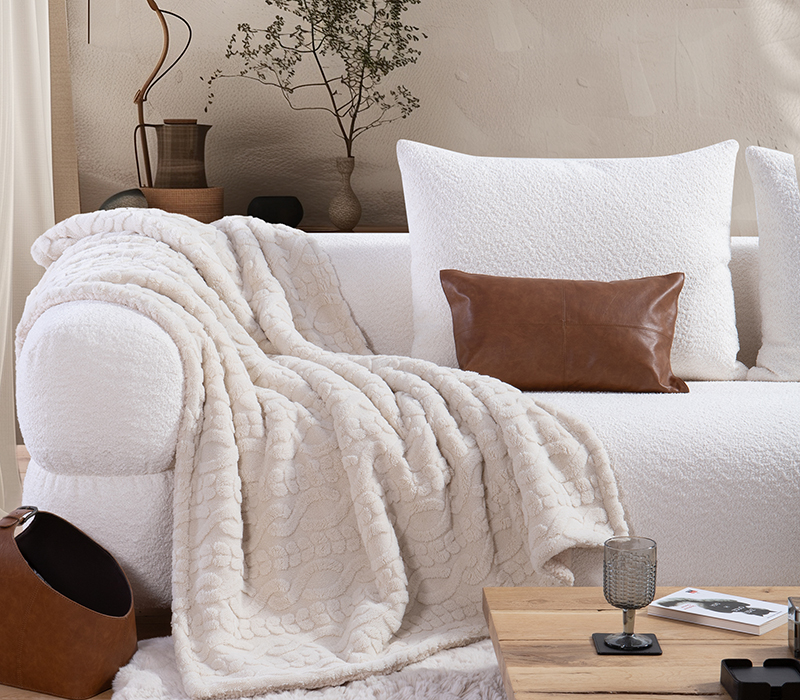 Κουβερτάκι καναπέ 130x180 από την μπροστινή πλευρά fleece 100%polyester 230gr/m2 και από την πίσω πλευρά 100%sherpa γούνα 230gr/m2.